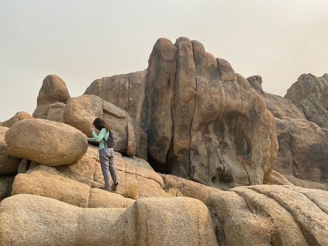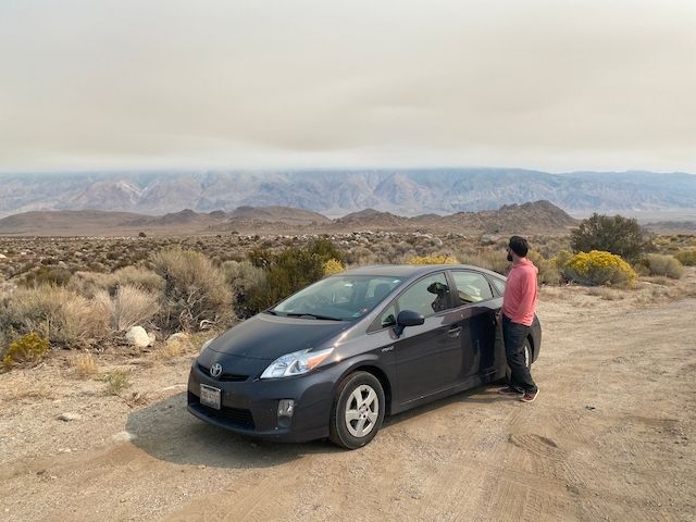 We'd just about reached the Alabama Hills at the foot of Mt. Whitney when we started smelling a bad smell. It wasn't Truman (or Carrie), it was the Rugged Prius. We got out to see white smoke coming from the break-pads in the wheels. This is when we remembered about engine breaking and promptly figured out how to spare the poor Rugged Prius' breaks during Rugged Descents. This would become especially important as we headed down into Death Valley.