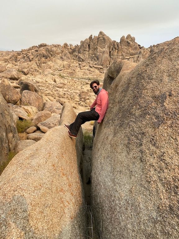 Carrie and I headed in to the Alabama Hills to try to get a glimpse of the filming location of Kevin Bacon's famed "Tremors." Unfortunately the road ("Movie Road") was closed, so we had to turn around and climb on some rocks instead. It's maybe not my best decision to skitter around boulders without a helmet or safety equipment, but there were a fair number of people around so I probably wouldn't have to one-hundred-twenty-seven hours myself. Plus it allowed us to take some sick rock-acrobat photos.